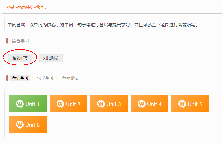 智能听写是针对不同学员近期所学单词中听 写出错频率较高的单词进行重听写的功能,不同的学员所学的内容不同,获取的听写内容 也不同,该听写具有较强的针对性,不需要用户重复听写所有单词便能准确地复习听写尚未熟练掌握的单词,使学习起到事半功倍的效果。